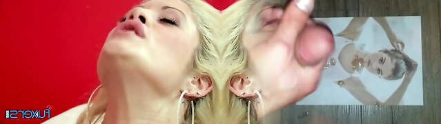 Luxurious busty platinum-blonde enjoys cum covered her nice face