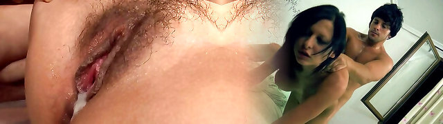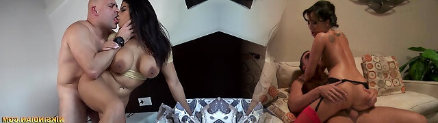 Hot dark haired chick in stockings Amelie Johnson aas boinked by her fellow