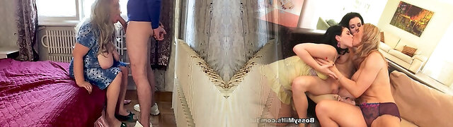 Cock hungry mature hottie in threesome with harsh DP