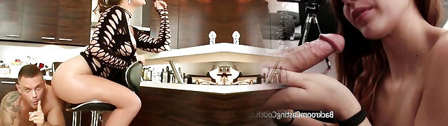 cute brunette Ava takes two rigid boners on the casting today