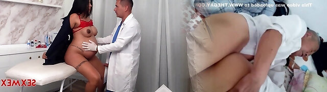 Pregnant Latina Melany sucks doctor's beefstick during pussy examination