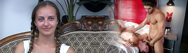 Beautiful young girl with pointy tits gets fucked doggystyle