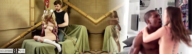 Cute tied up teen gets fucked in the butt until she drizzles like a fountain
