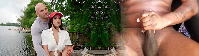 Endearing Dark-hued With Ample Tits Sucking Balls In Interracial POV Shoot