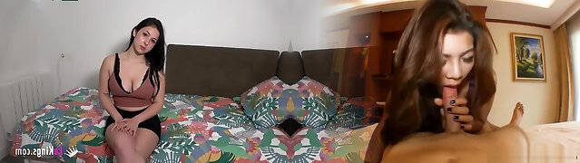 Naughty longhair chubby gives her new bf a blowjob