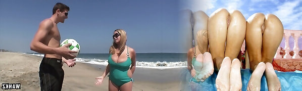 Busty BBW Kandi Kobain – bikini stunner romped by 2 young men