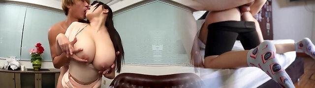 Japanese milf shows off her massive jugs and gives a breast banging
