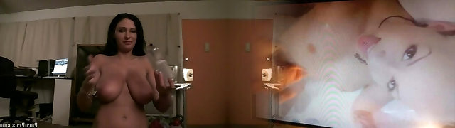 Massive areolas and jugs on the shaved pussy brunette babe