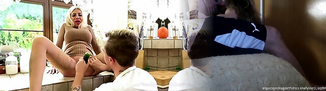 Bbw family friend goes to the kitchen