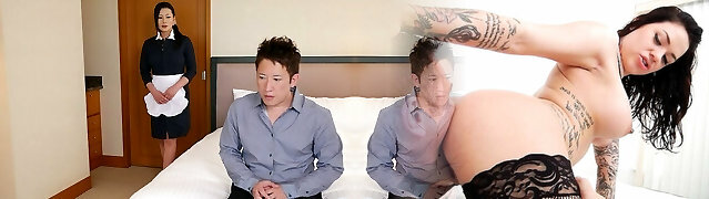Smallish Humungous Boob Maid Tia Gives A Full Service Cock Cleanup