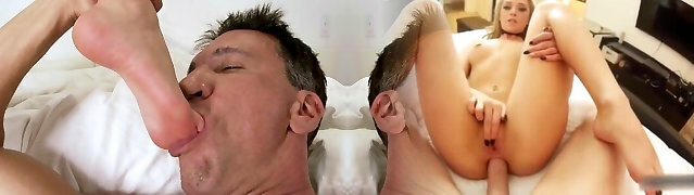 Blond Feet And Mouth For His Cock