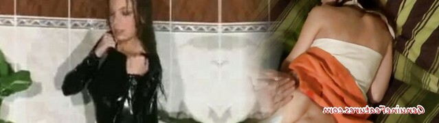 Hot rubber babe streching legs and squizing orbs hard
