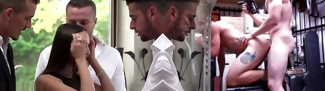 Sweet brownie gets fucked rough by trio dudes