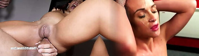 Lovely Babes Getting Group-fucked And Cum Covered