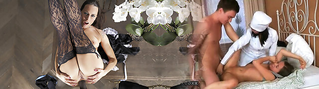 French maid mega-bitch bent over and fucked up the ass