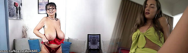 grandmother plays with her stepdaughter's huge tits and eats her nipples