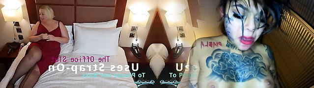 Lesbian Granny Plumbs Bella Bendz Chubby Holes Using a Strapon Fake Penis