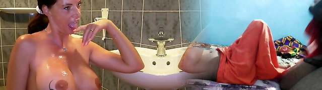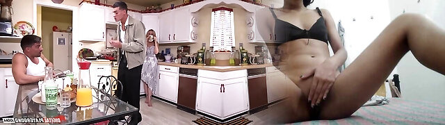 I fill my step-mother with milk after a good massage, while parent cooks