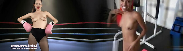Cocky slut in tights high heels and boxing gloves flexes