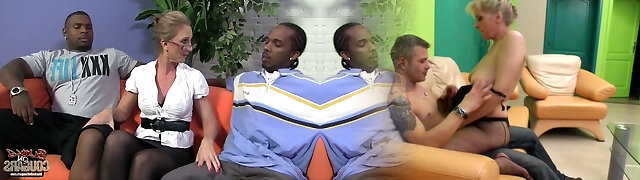 Platinum-blonde Muttis lassen sich auf gruppenfick mit zwei Afrikaner ein