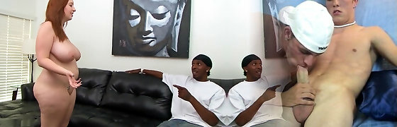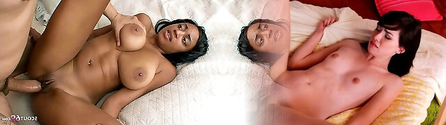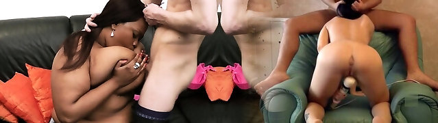 Busty chocolate plumper rails white dick
