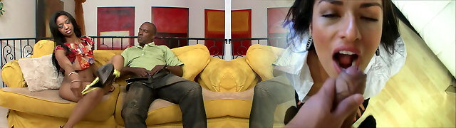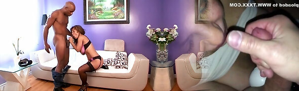 Vivacious brunette gets banged by a big ebony cock as cuckold hubby watches
