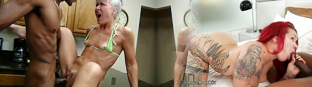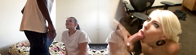 Wonderful Busty Blonde Gets the Incredible Big Black Cock Inches In Her Throat And Pussy