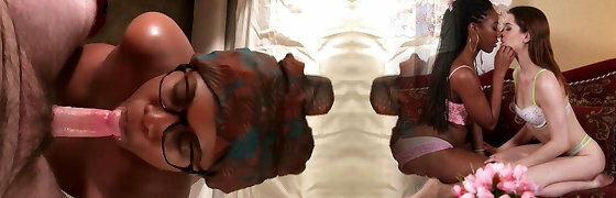 Naughty mother shares big black dick with stepdaughter