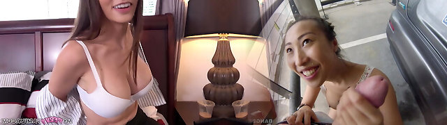 Sucking perfect nipples and spunking on their beautiful tits