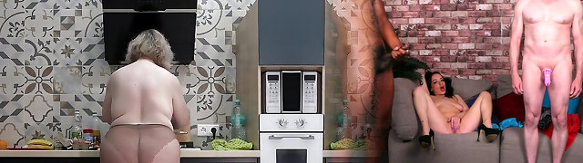 What do you want for breakfast: me or scrambled eggs? Curvy wife in nylon tights. Huge-titted milf with big bootie behind the scenes.