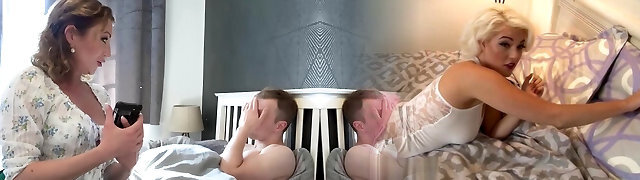 MOMMY'S BOY - Torrid Platinum-blonde Stepmoms Kayla Paige And Kit Mercer Struggle Over Their Stepson's Big Cock!