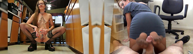 Step-mom Blowjob and Titjob on Huge Fake Cock! How Can I Stand Against a Big Cock Through My Sonny's Pants?