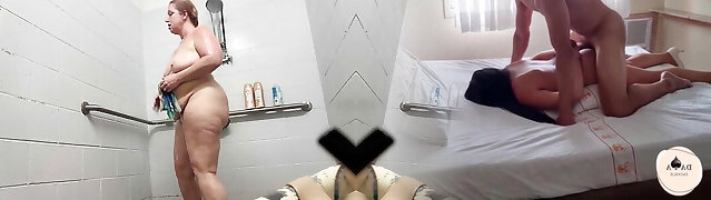 BBW Stepmom With Giant Tits Beggin Her Stepson to Fuck Her Ass in a Douche