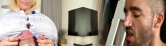 Blonde milf drives me horny with a blowjob and titjob combo in POV vid