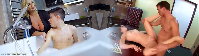 Huge Boobed Milfs Kiki Daire And Natasha Nice Pleasure Their Stepsons In A Sensuous Group Hookup