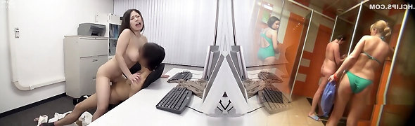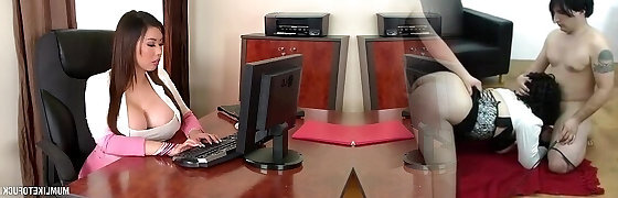 Asian office lady gets position Sixty-nine and more at work