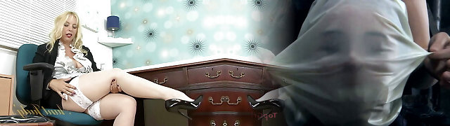 AuntJudys - Busty Blonde MILF Lucy at the Office in Pantyhose