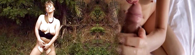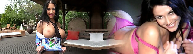 Bosomy brunette slut Kyra Super-steamy fucks a hot guy outdoors