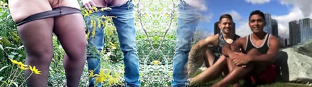 Mother-in-law helped her sonny-in-law pee and pisses herself doggy style while her son-in-law jerks off