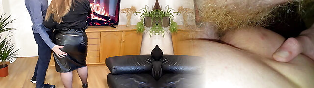 Busty Spectacular Brunette Secretary In Torn Stockings and Leather Skirt Pleases Her Horny Boss