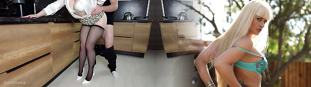 Humped in the kitchen, Busty Stepmom in Pantyhose gets Jism on Heels