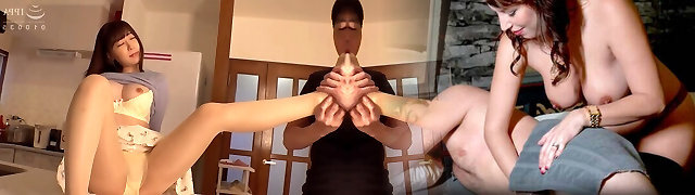 Step mom in stockings gives the best hj on crossed legs
