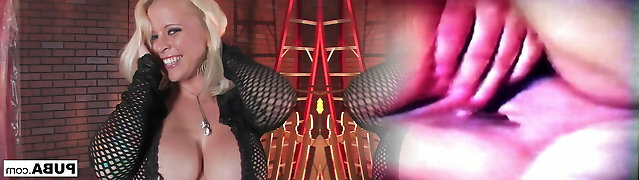 Busty blonde moans while she fucks