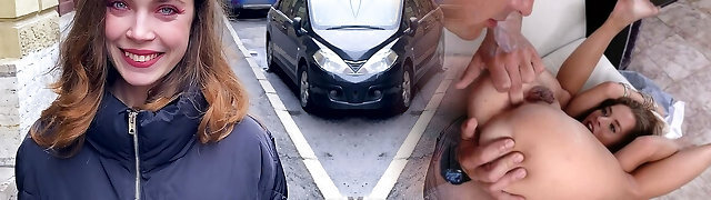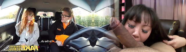 Fake Driving College Creampie in nerdy ginger teen hairy muff