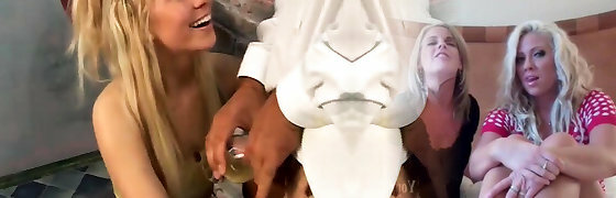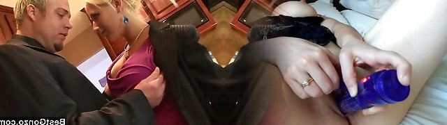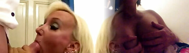 Hand-job by sexy and busty blonde