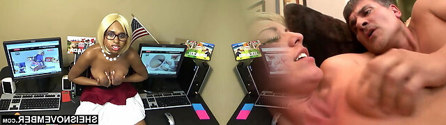 Exotic bigtit secretary sucks big ebony cock