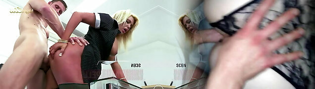 Horny busty blonde assistant Casca Akashova loves fucking furious on the table