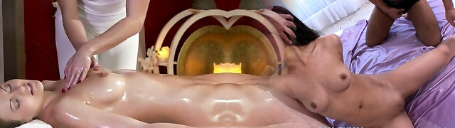 Sexy massage from cute big-boobed brunette woman