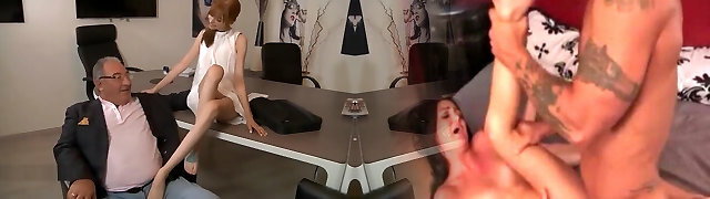 Long legged gal Leah is nasty office slut who loves flashing her panties