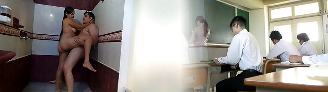 Busty brunettes take a douche and then have group sex